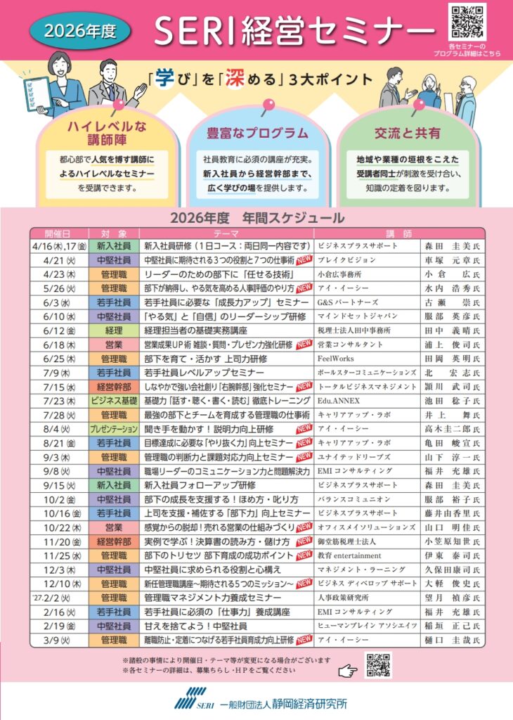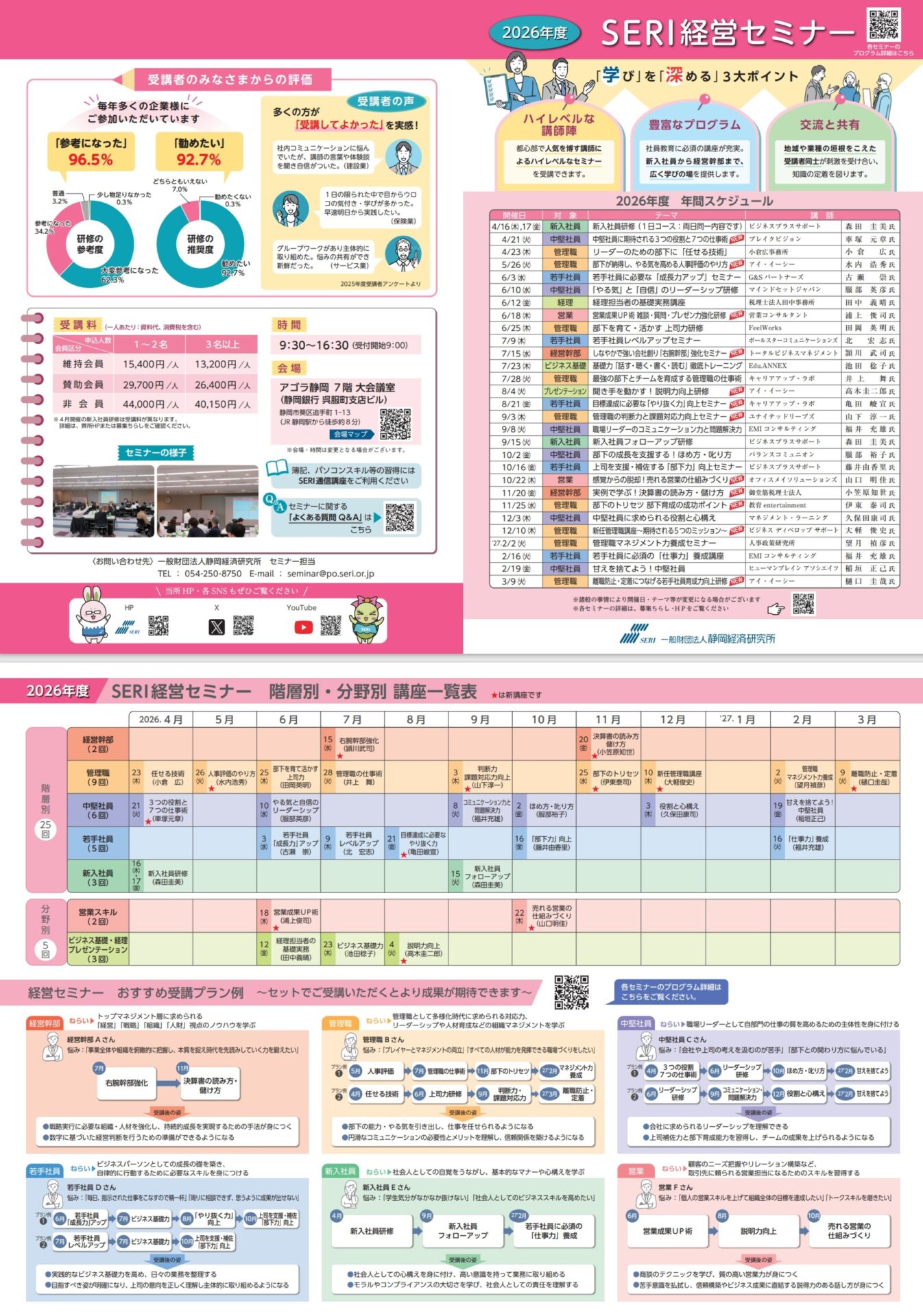 2026年度 SERI経営セミナーの年間スケジュールが確定いたしました!