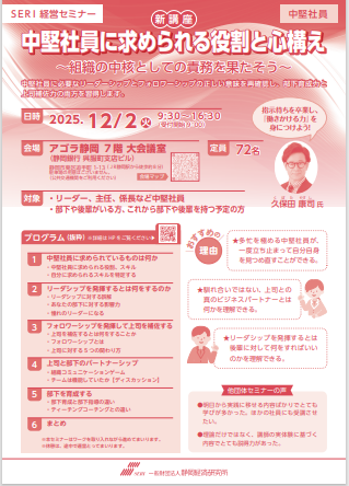12月2日(火)『中堅社員に求められる役割と心構え』NEW!<満席>