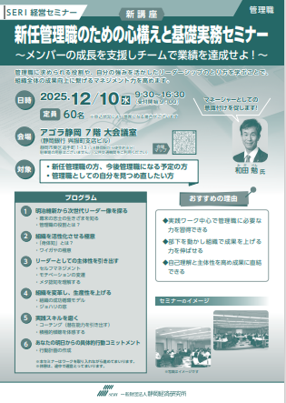 12月10日(水)『新任管理職のための心構えと基礎実務セミナー』NEW!